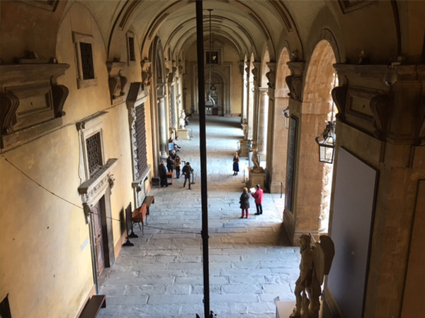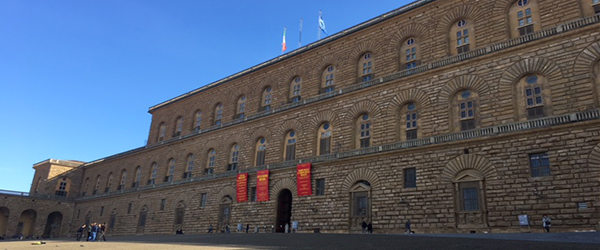 Questo Palazzo è stato costruito dalla famiglia Pitti nel 1457 su disegno di Filippo Brunelleschi e realizzato da un suo allievo; la costruzione originale prevedeva solo la parte centrale dell’edificio attuale ed era la più grande residenza privata della città. La famiglia Pitti andò in rovina e nel 1549 il Palazzo fu venduto alla famiglia Medici, divenendo così la residenza della famiglia granducale. Nel 1560 Bartolomeo Ammannati progettò e realizzò l’ampio cortile e aggiunse le ali laterali; la facciata rimane immutata. Oggi Palazzo Pitti ospita alcuni importanti musei di Firenze: la Galleria Palatina (con una collezione di quadri del XVI e XVII secolo); gli Appartamenti Reali con arredi sfarzosi e ricchissimi del 1800; il Museo degli Argenti; la Galleria d’arte moderna (pitture del XIX e XX secolo); il Museo delle Porcellane e la Galleria del Costume unico in Italia per estensione e uno dei più importanti del mondo. Il Palazzo si affaccia sul famosissimo Giardino di Boboli, uno dei più importanti esempi di giardino all’italiana, commissionato da Cosimo I nel 1549 e pieno di grotte, statue, fontane, un anfiteatro, il Casino del Cavaliere, ecc.: un vero museo a cielo aperto ispirato a Versailles. Sia la famiglia Medici che la famiglia Lorena e Savoia ci vissero e continuarono ad arricchire le collezioni esposte nel giardino.