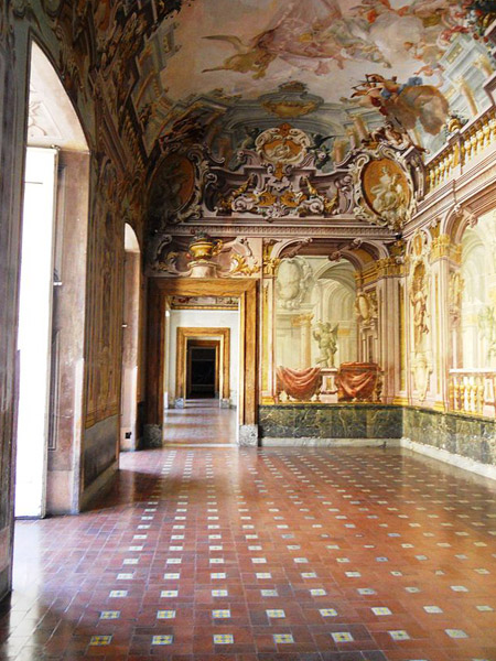 The palace of Portici, with three floors, is the summer residence of the Bourbon royal family, and his court, commissioned by the King of Naples, Charles of Bourbon in 1738. The project was entrusted to Giovanni Medrano and later to Luigi Vanvitelli. In addition to the residence it was built the park: an English garden that slopes towards the sea with numerous statues and fountains and an amphitheater. The realization of this palace led to the discovery of numerous archaeological finds, and the king decided to create a museum to put all the items found in the excavations. Among the most precious achievements it will keep the porcelain sitting room of Queen Maria Amalia (now in the Capodimonte Museum). In 1799, with the Neapolitan revolution, the palace was abandoned and robbed of numerous works. With the French rule of Joachim Murat, there were renewals of the decorations in the style of the time, especially for what concerns the furnishings; Also in this period they were transferred to the remaining antiquities in the Museum of Naples. Around 1870, with Ferdinand II the palace was connected to the town with a railroad, the first case in Europe. In the same period it was added a botanical garden consists of two large gardens, greenhouses, nurseries and laboratories for the study of plants. Beyond the garden it stretched a forest in which the nobles svagavano with the "game ball" or "fortifications". Today the Palace houses the headquarters of the Faculty of Agriculture, University of Naples.