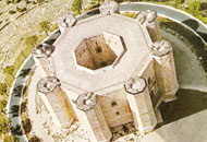 Castel del Monte is a building dating back to the 13th Century, wanted by the emperor Frederick II in Apulia, in the small town bearing the same name that is now part of Andria district. The attribution to a specific architect is yet uncertain: some say the architect might be Riccardo da Lentini but many others state that the very Frederick II had the original idea for building. It seems that it was built on the ruins of a previous at first Lombard and then Norman fortress. From the 17th Century a long period of neglect followed, during which the castle was deprived of the furniture and the marble wall decorations, and it became a prison as well as a recovery for shepherds, bandits and political refugees. The building has an octagonal layout and octagonal shaped turrets stand out at each corner.