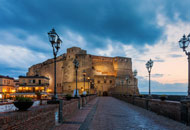 Sul roccioso isolotto di Megaride, a pochi metri dalla riva, sorge imponente il Castel dell'Ovo, così denominato secondo la leggenda che vuole che Virgilio avrebbe nascosto un uovo “protettore” all'interno di una gabbia nei sotterranei.